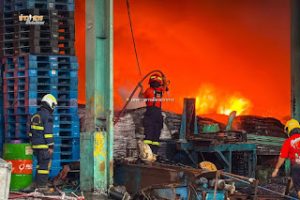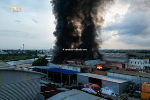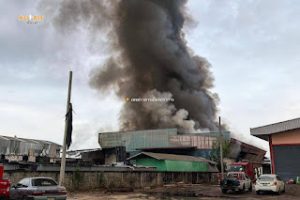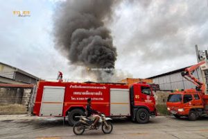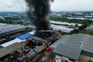 ไฟไหม้โรงงานรีไซเคิลยางรถยนต์ เพลิงโหมหนักคุมไม่อยู่ เข้าชั่วโมงที่ 5 ยังดับไม่ได้