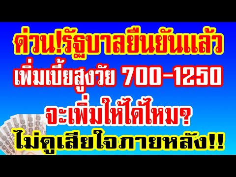ด่วน!รัฐบาลยืนยันเเล้ว เพิ่มเบี้ยยังชีพผู้สูงอายุ700-1250บ.จะเพิ่มให้ได้ใหม ไม่ดูจะเสียใจภายหลัง