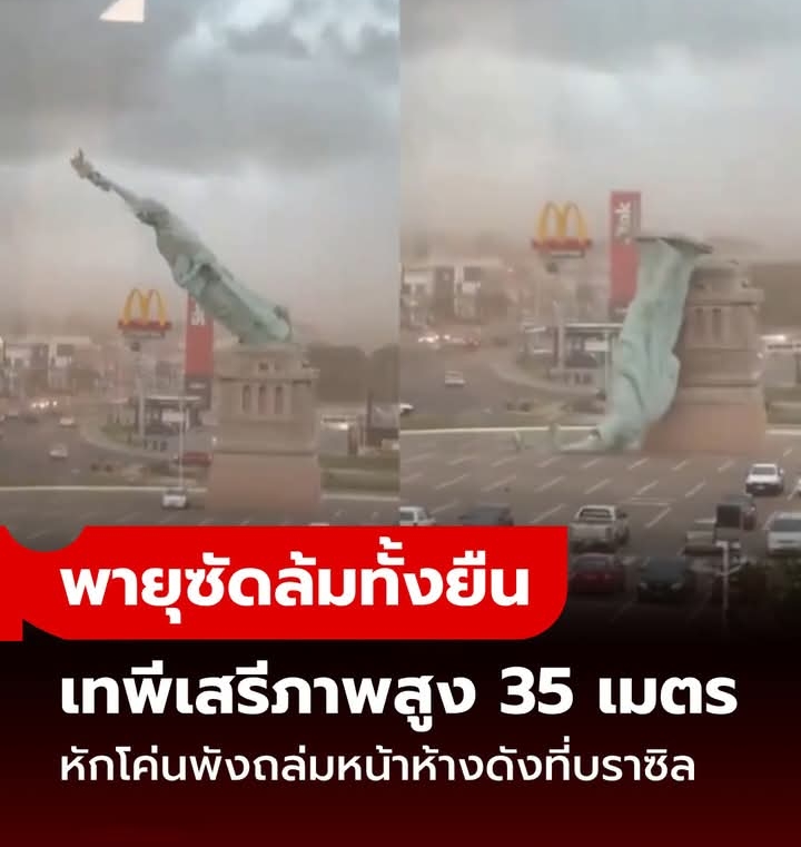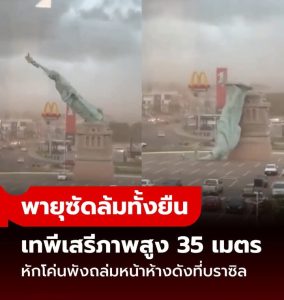 ล้มทั้งยืน! พายุซัด “เทพีเสรีภาพ” ความสูงเท่าตึก 11 ชั้น หักโค่นหน้าห้างดังบราซิล